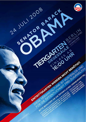 Estoy un poco desconcertado con esta elección, quizás la estoy viviendo demasiado dentro, por eso agradecería todo tipo de comentarios porque ultimamente mi reducido pero amado público está bastante pasivo. Obama es la gran incógnita, y prometo una reflexión más específica sobre el fondo de las dos campañas. Pero ayer, como todos, volví a alucinar con el despliegue de Obama en Berlin, cualquiera diría que Mccain no tiene nada que hacer contra ese fenómeno mundial pero los que votan son los americanos y la última encuesta sigue hablando de una distancia de 6 puntos, que resulta ridícula si analizamos las dos campañas, ¿no os parece alucinante?