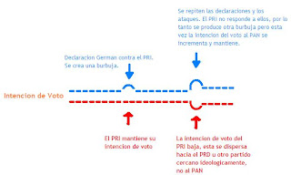 La forma de ver como afectaba estos ataques a la intención del voto es muy sencilla y fácil de explicar: imaginemos que la intención de voto para cada partido es una línea recta, cada declaración que realizaban los partidos podrían hacer que sobre esta línea se produjera una burbuja que alteraba la intención de voto –aumentándola o decreciéndola- pero siempre regresando a su estado normal; sin embargo, cuando un partido no respondía a la declaración del otro o simplemente caía en su juego, esta burbuja no se desinflaba del todo, sino que alteraba definitivamente la línea del voto hasta otra nueva declaración.
